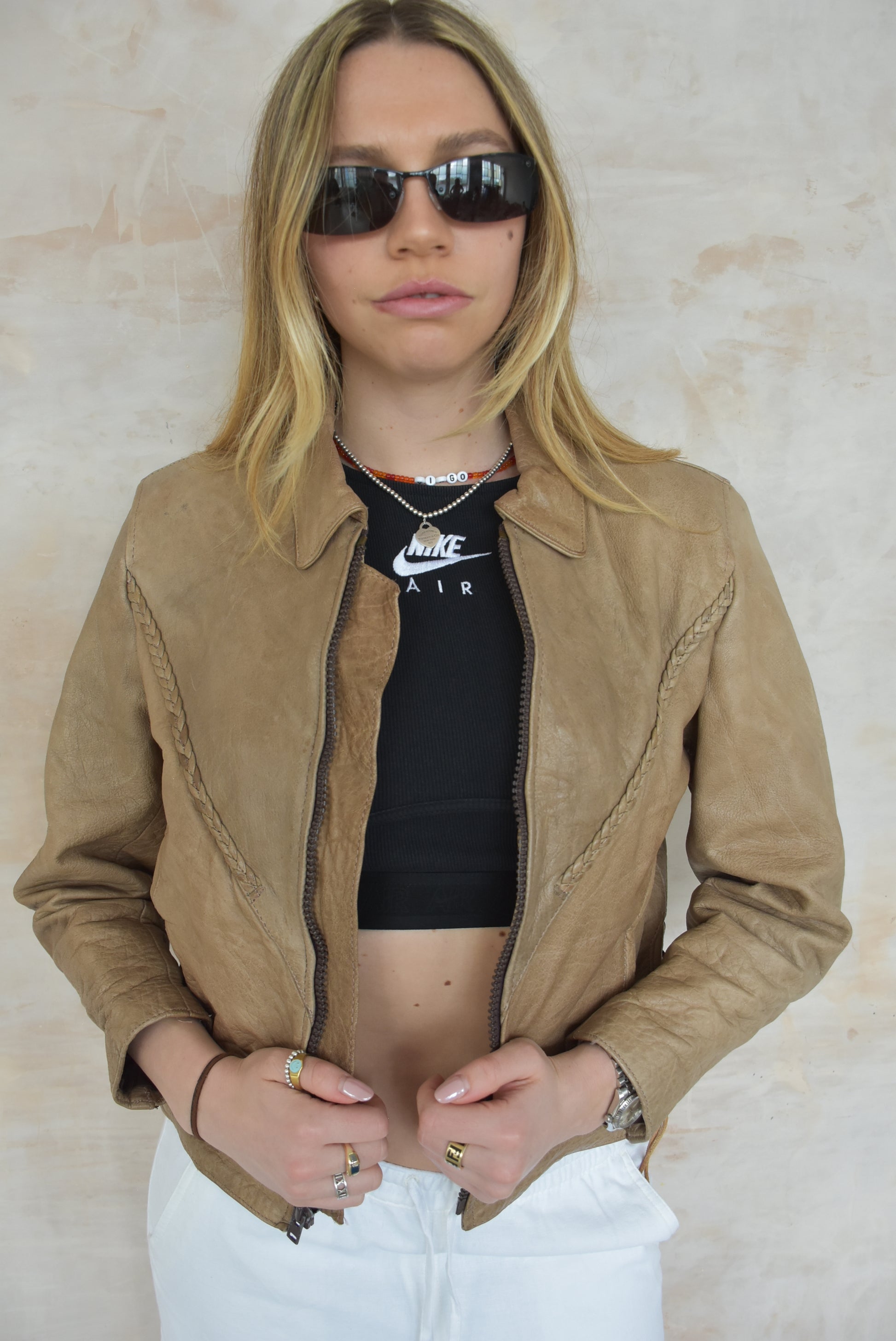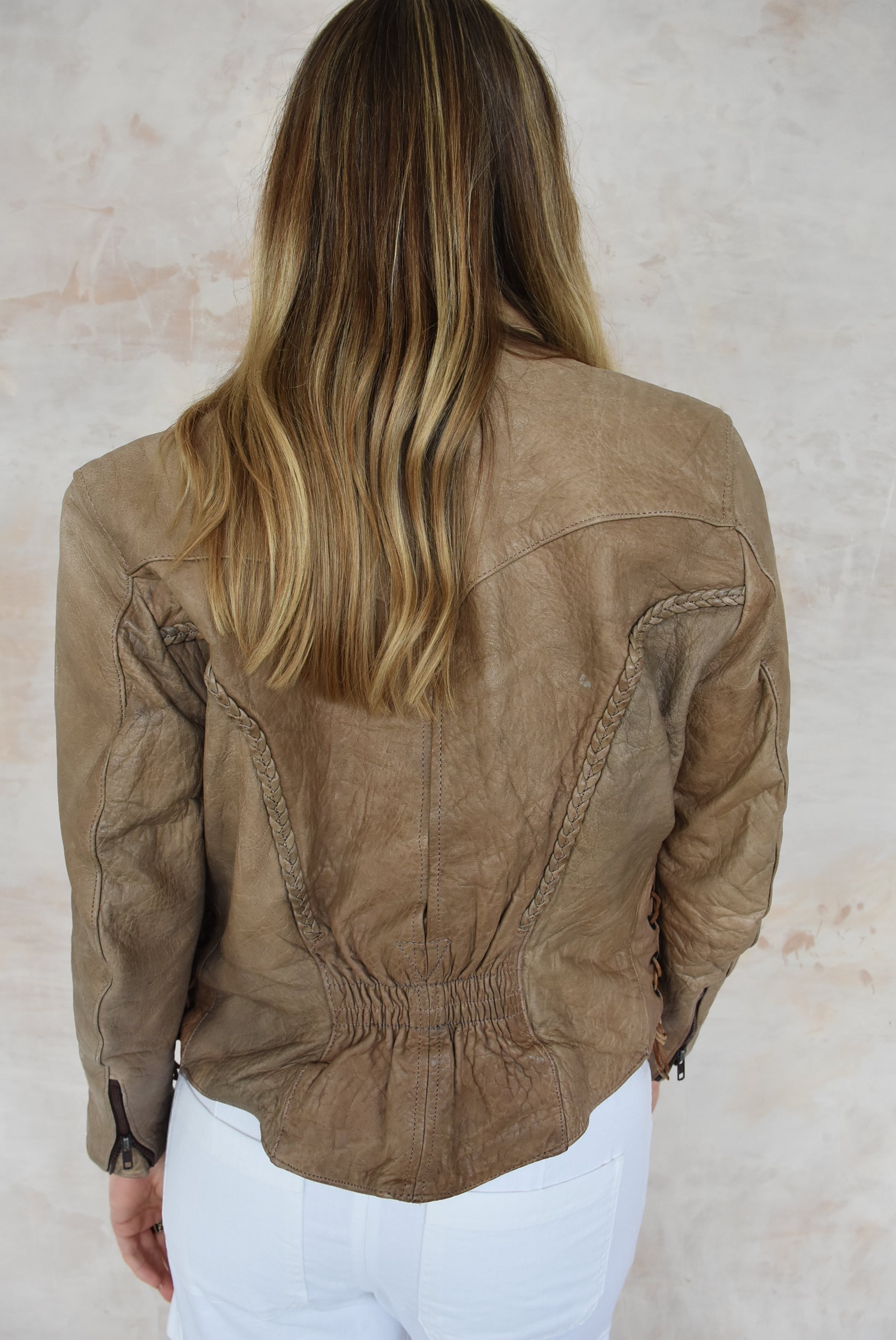 Light brown leather jacket - with rope seam detail and lace up sides.