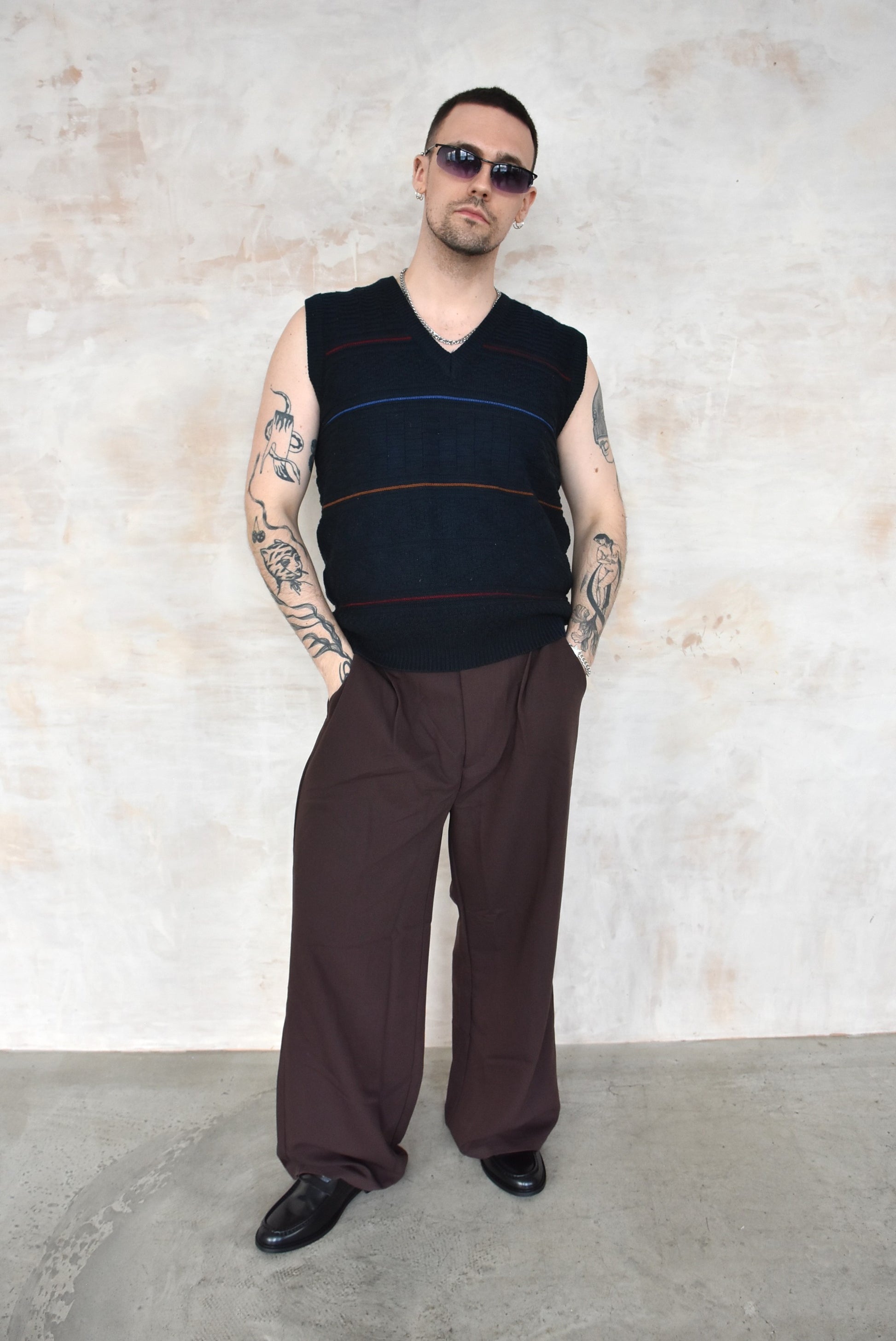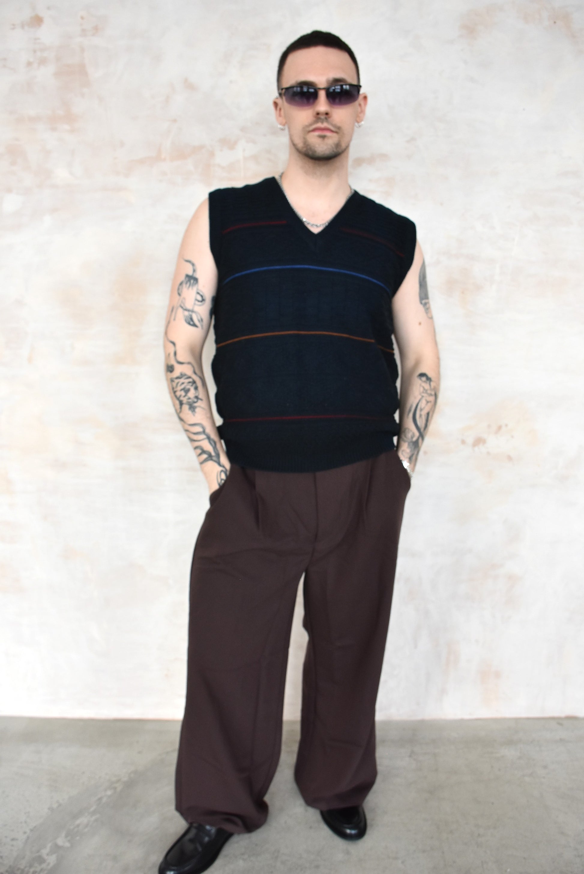 Navy golf knitwear V-neck vest with stripe detail, from vintage brand II Sport.