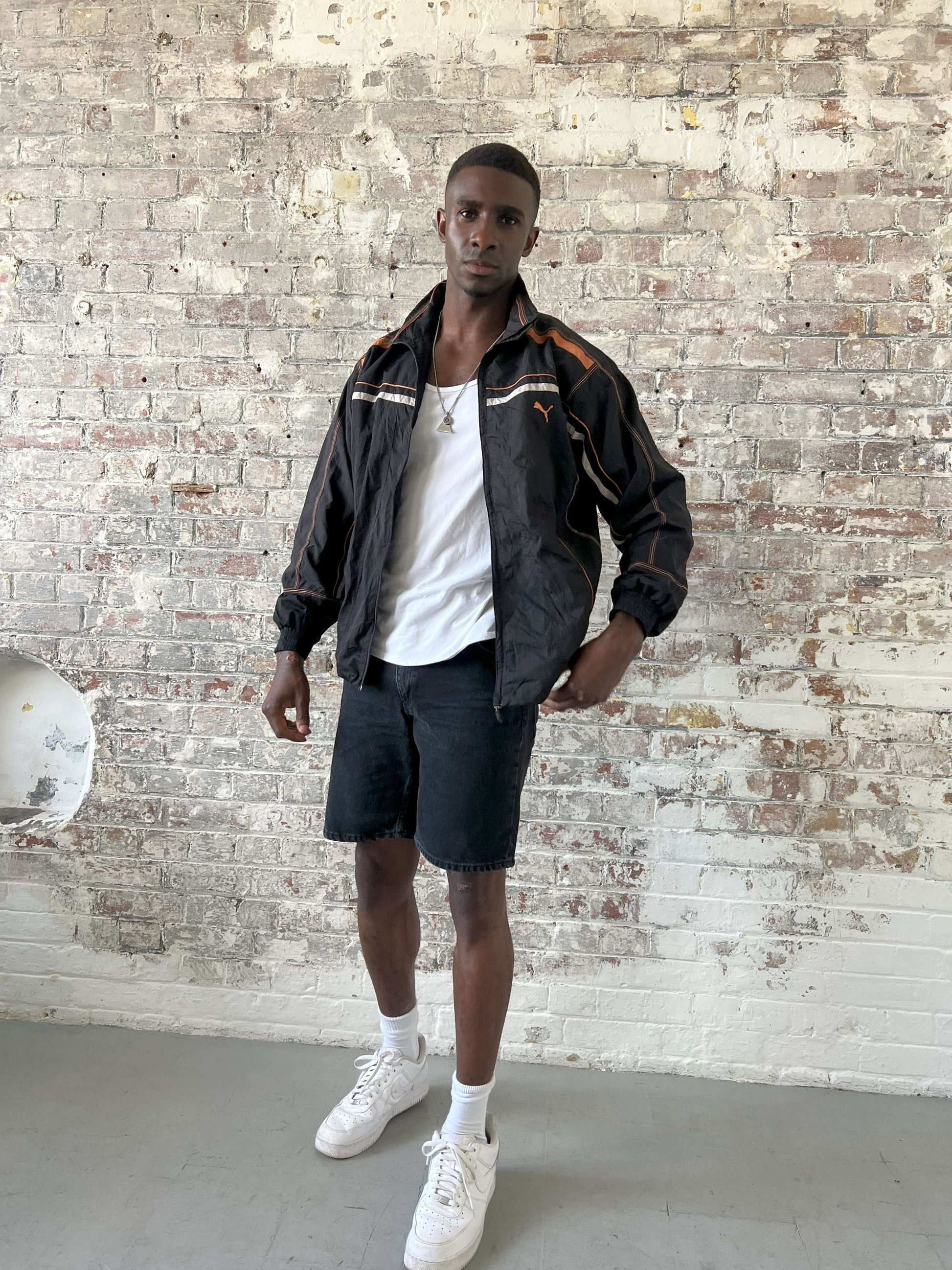Vintage black Puma lightweight jacket - collared zip up jacket with orange and white details.